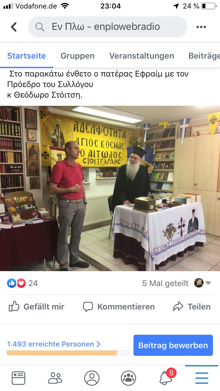 Τις τελευταίες ημέρες του Ιουνίου είχαμε την χαρά να φιλοξενήσουμε για 20ή φορά, με την άδεια και ευλογία του Σεβασμιότατου Μητροπολίτη Γερμανίας κ.κ.Αυγουστίνου, τον Λόγιο Πρωτοσύγκελο της Ι.Μ. Σισανίου και Σιατίστης Αρχιμ. Εφραίμ Τριανταφυλλόπουλο.